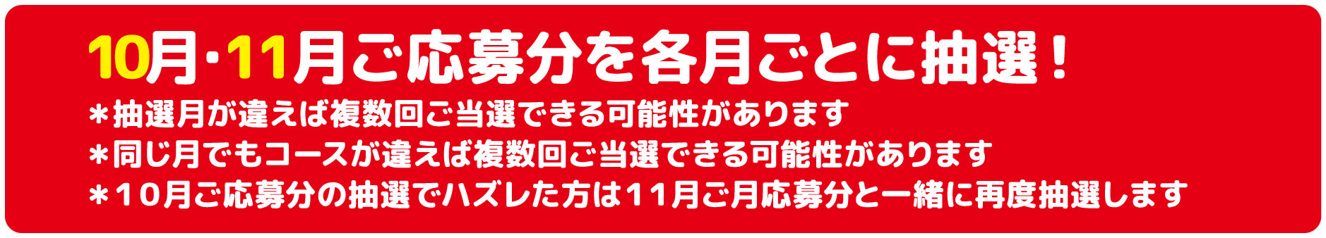 抽選は10月ご応募分と11月ご応募分に分けて2回行います。